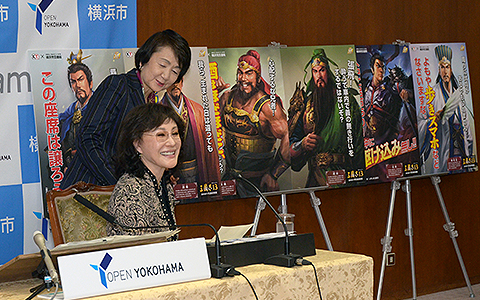 记者会上,本公司的代表取缔役会长襟川惠子也出席参加,介绍了过去颇为盛大的“新罗曼史”系列的合作活动。她热情地表示,因为自己是出身于横滨,希望通过这一回的首次“三国志”合作活动,“为横滨出一份力”。