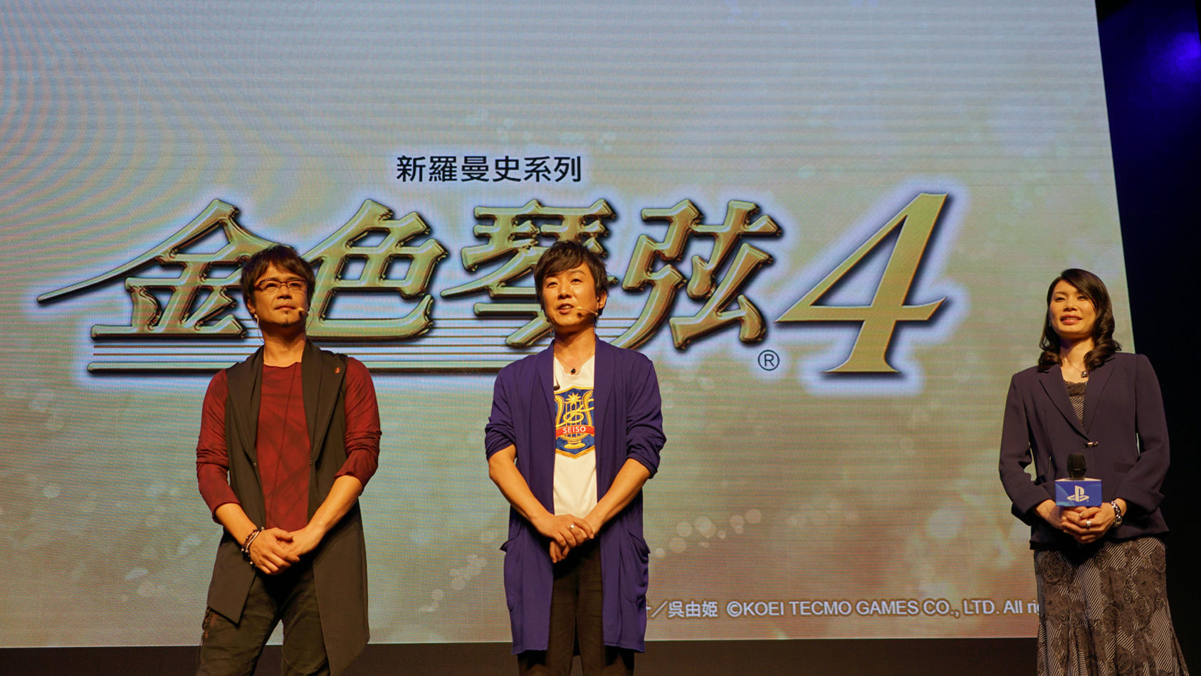 配音演员石川英郎先生(左)、内田夕夜先生(中央)、日本光荣特库摩游戏公司取缔役 襟川芽衣女士(右)