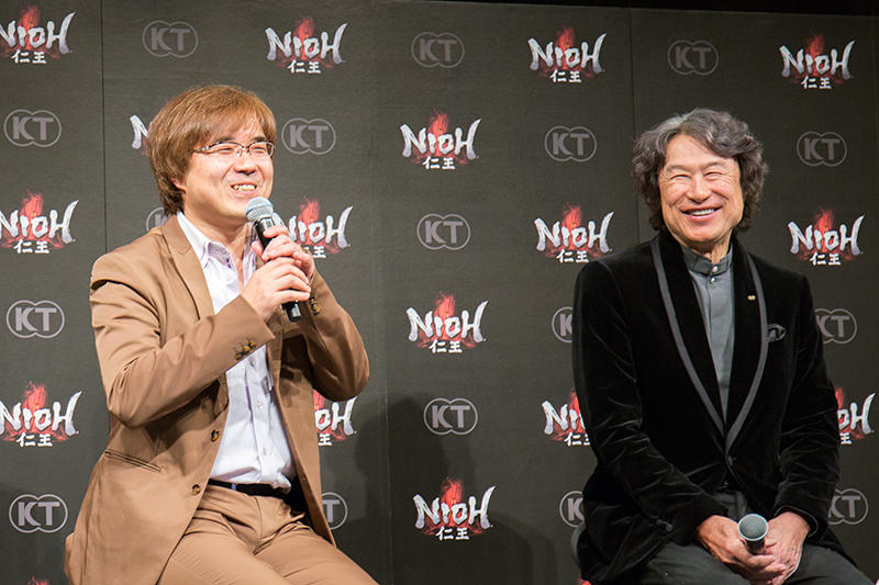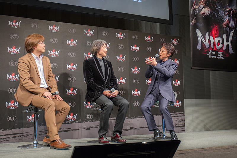 SHIBUSAWA KOU和制作人鲤沼久史登台回顾了《仁王》到发售为止的历程。