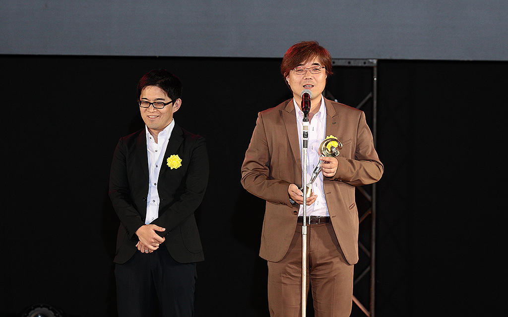 《仁王》制作人 鲤沼久史(右)与总监 早矢仕洋介(左)发表获奖的喜悦之情