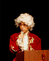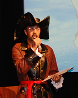 | 扮成航海者学校教官的《大航海时代 Online》的运营制作人渥美贵史(右)、开发制作人竹田智一(中)、游戏主设计师山田伦之(左)。他们每次登场,场内都会欢声雷动。 |
