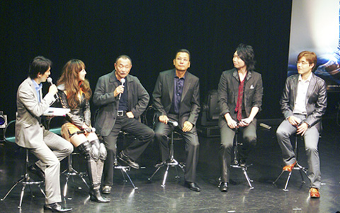 作者武论尊先生(中间居左)和漫画家原哲夫先生(中间居右)。对于预定2010年发售的《北斗无双》,二人分别阐述了自己的期待。