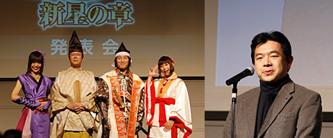 (左起第三)在电击在线(http://dol.dengeki.com/)撰写《信On》特辑的“稻庭乌冬”先生、为《Fami通Connect!On》执笔《信长之野望 Online》连载报道的景清先生以及漫画家小林アヴ子女士。他们从玩家的角度,向开发制作人和开发导演询问了《新星之章》的相关问题。