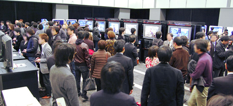 在公布了一系列消息之后,又通过实机演示对本次体验会版本的游戏内容、式样以及操作进行了说明。紧接着与会者们移步至设有40台试玩机的体验区,抢先体验了《北斗无双》的游戏乐趣。所有人都充分利用这珍贵的20分钟时间专注于《北斗无双》的游戏体验。 |