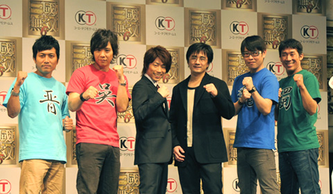 (左起)重冈谦作先生(Laugh Control)、藤原一裕先生(License)、田村淳先生、《真·三国无双6》制作人铃木亮浩、金成公信先生(银七)、田村裕先生(麒麟)。