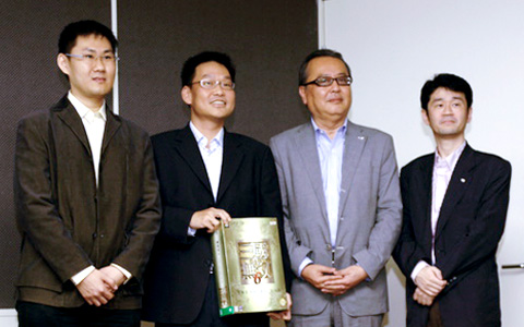 (左起)TKS开发代表Siow、新加坡经济开发厅产业开发局长Yeoh Keat Chuan、日本光荣特库摩游戏公司网络事业部长小林伸太郎、开发制作人上野彰三