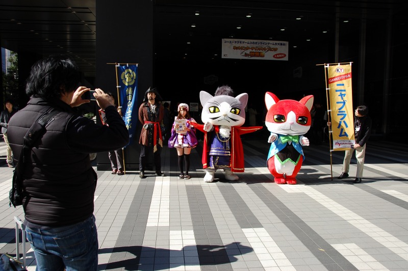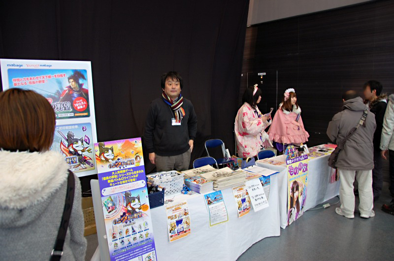 除了舞台活动以外,还在会场设置了3款作品的体验区,使众多玩家乐在其中。社交游戏《信喵之野望》(暂称)的“织田信喵仔长”以及社区官方网站“my GAMECITY”的NYABURAHAMU RINNYAN市长也前来助阵。“战国女仆咖啡馆 MONONOPU”的前田梓先生带来了小型现场演出,将活动推向高潮。此外,还进行了“MONONOPU”与“信喵仔长”的商品销售。活动在热情的气氛中圆满地落下帷幕。