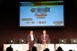 (左)日本光荣特库摩游戏公司代表取缔役社长襟川阳一先生表示“通过融合崭新的企划与技术,我们希望献给玩家超越之前作品的崭新有趣的网络游戏。”