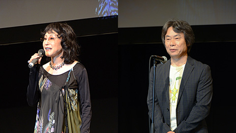 (左)日本光荣特库摩游戏公司代表取缔役会长襟川惠子。