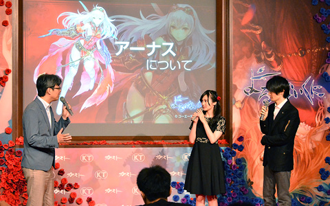 发布会上,饰演主人公Arnas的M・A・O小姐与负责角色设计的四々九先生登台与大家见面。M・A・O小姐讲述了在饰演Arnas时特别注意的要点,以及这个角色与Lyuritis的关系;而四々九先生则讲述了在设计各个角色时力图贯彻的理念。