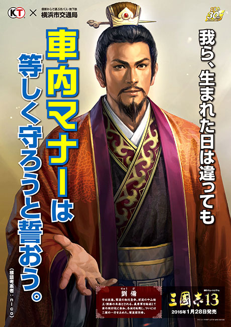 作为历史模拟游戏“三国志”系列30周年策划的一环,本公司将与日本横滨市交通局展开合作。在横滨市政府召开的定例记者会上,横滨市长林文子女士介绍了从“三国志之日”12月10日(周四)开始的合作内容的概要。