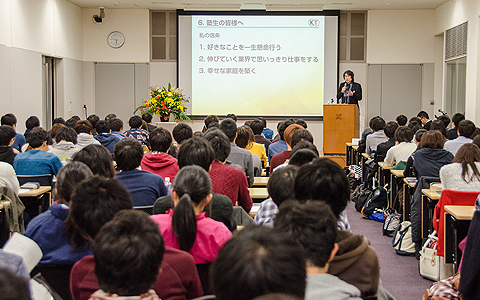 演讲的最后,襟川对在座的学生陈说了“拼尽全力来做喜欢的事”的重要性,鼓励学生们“不要忘记,要选择今后有发展空间的业界,在其中拼命工作。并且,要在社会上成功,一定少不了一个在背后支持的幸福家庭”,并以此作为演讲会的收尾。