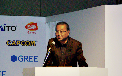 日本光荣特库摩游戏公司网络事业部长小林伸太郎先生发表在GREE Platform推出《真·三国无双(暂定)》。