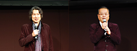 (左)日本光荣特库摩游戏公司代表取缔役社长襟川阳一先生表示“通过融合崭新的企划与技术,我们希望献给玩家超越之前作品的崭新有趣的网络游戏。”