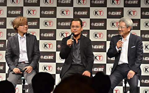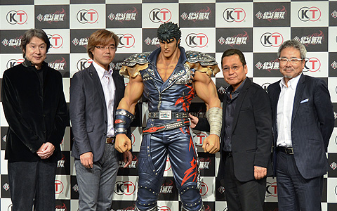 (照片左起)日本光荣特库摩控股公司代表取缔役社长襟川阳一、《真·北斗无双》制作人鲤沼久史、《北斗神拳》漫画家原哲夫先生、North Stars Pictures代表取缔役社长堀江信彦先生。