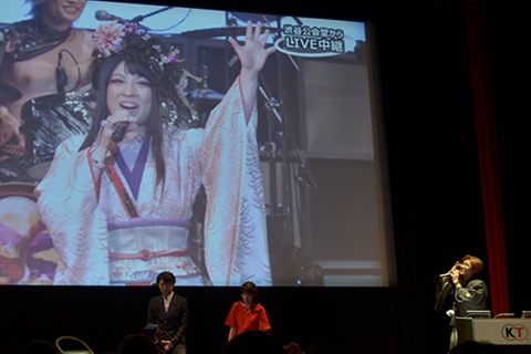 在发布会现场直播在日本涩谷公会堂同时进行的“日本传统乐器乐团”“战-ikusa-”的首演。