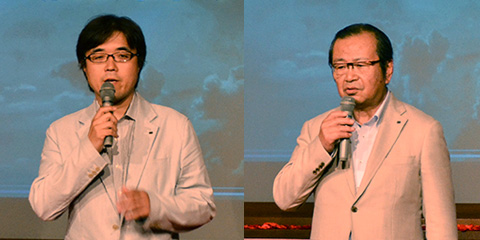 (左)日本光荣特库摩游戏公司代表取缔役社长 鲤沼久史